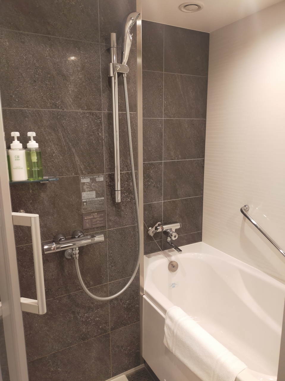 マッサージチェアの有るデラックスツインルームに宿泊、1日歩いて疲れた体が楽になって良かった。お風呂は清潔でバストイレ別で洗い場があったし、Refaのシャワーヘッドが付いてました。部屋着はセパレートタイプで良かったのですが、ズボンの股の部分に穴が開いてました。空調の音も静かで水回りの音も気にならない、ぐっすりと眠る事が出来た良いお部屋でした。