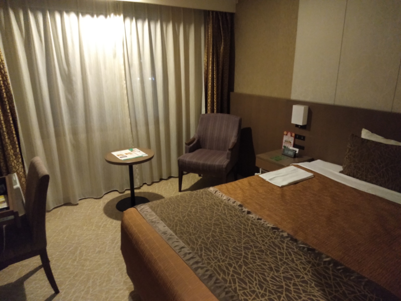 部屋は写真のとおりゆったりしており、とてもくつろぐことができました。ベッドの雰囲気は少し固い印象がありますが、使ってみるとそうでもありません。また、椅子もしっかりとビジネス使いできる仕様になっており、テーブルでの作業も簡単です。