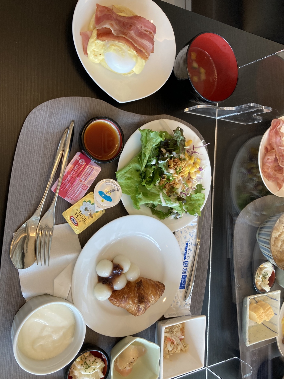 朝食は2000円の割には品数が少なかった。白玉柿の葉寿司はおいしかったです。
