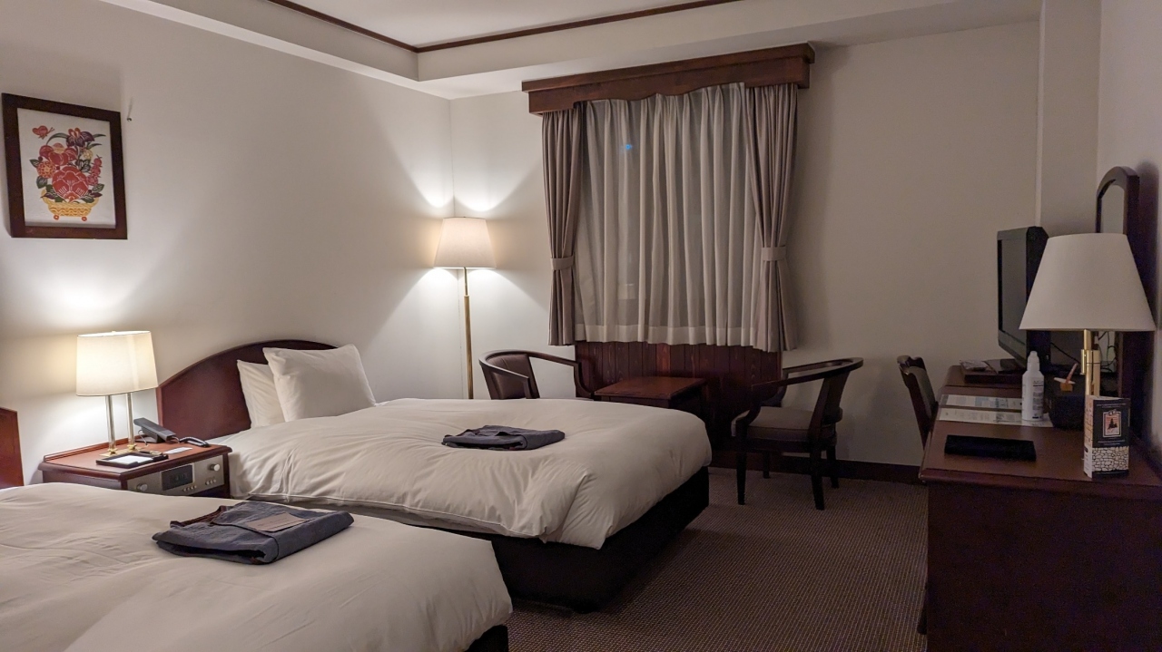 ロビーや併設の喫茶室「八十六温館」でも松本家具が使われ、落ち着いた雰囲気のよいホテルでした。上下別れた室内着も着心地がよく、売店でも販売されていました。バイキングの朝食は、地元食材を使ったおばんざいがふんだんに並び、ぶどうジュースやカレーも大変おいしく大満足でした。次に松本に行くときも泊まりたいホテルです。