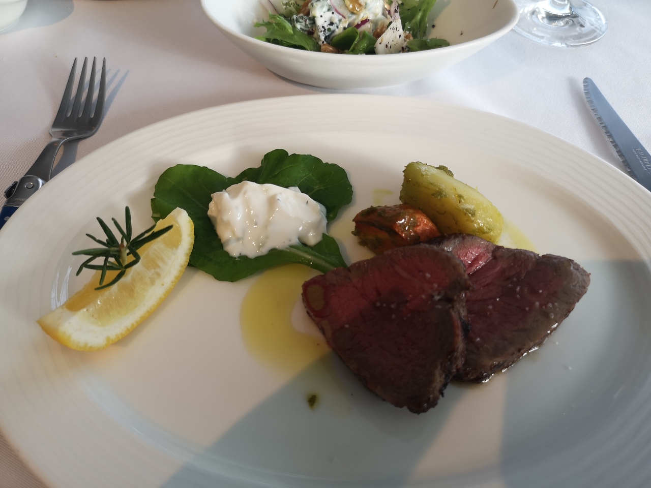 ギリシャ料理のレストランで夕食と朝食を食べたが、すごく美味しかった。