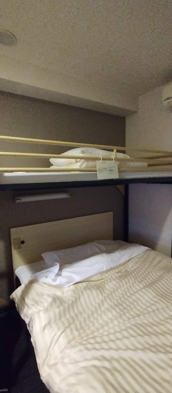部屋はシングルの部屋にロフトベッドがついていて、ツインとしても使えるようだが、面積はちょっと余裕のあるシングル級。