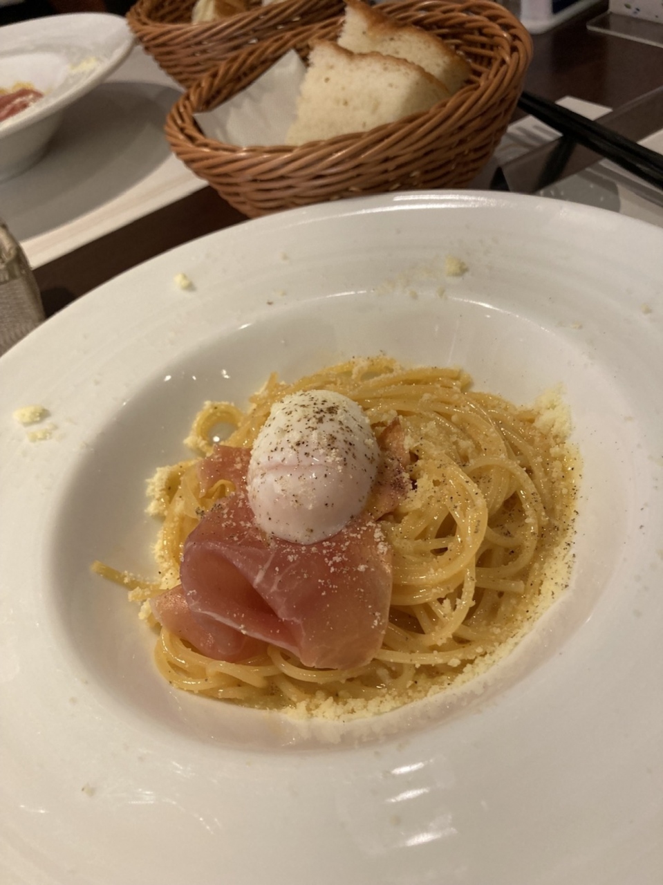 今回はパスタが少し柔らかくて、減点です。