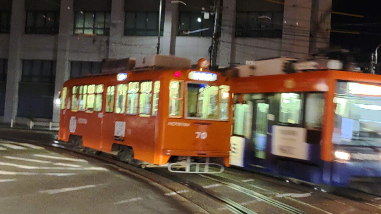 勝山町電停目の前で、尚且つ電車がカーブを曲がるので、どうしてもキーキー音が鳴ります。