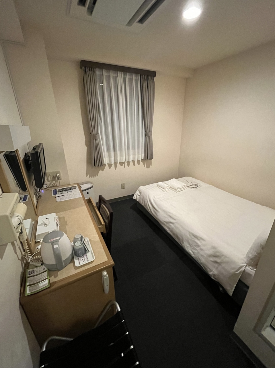 広さはあまりまりませんが、シャワールームが特に狭くトイレに座ったらドアにビザが当たるくらいです。他は市街地にも立地がよく便利は便利です。