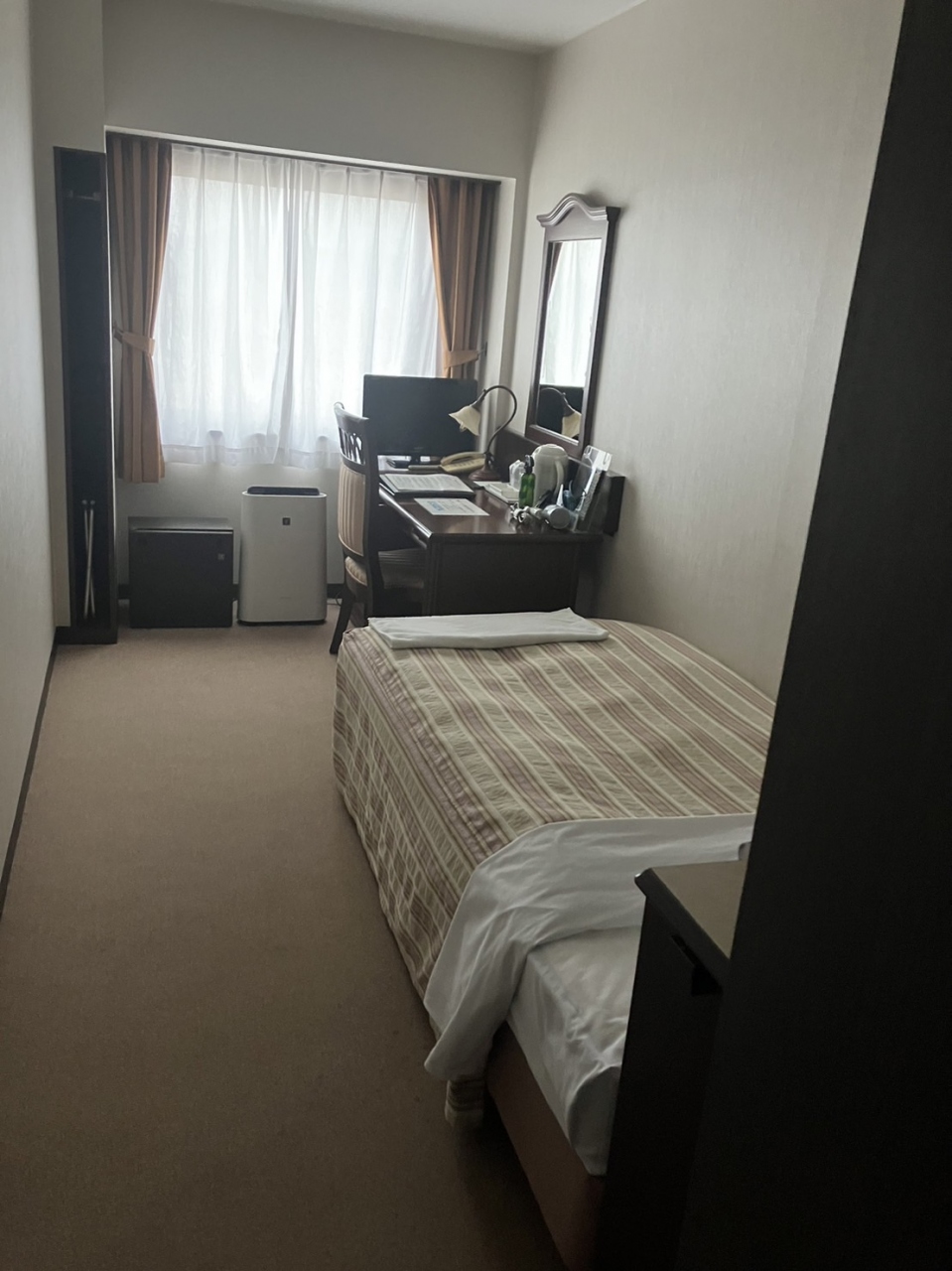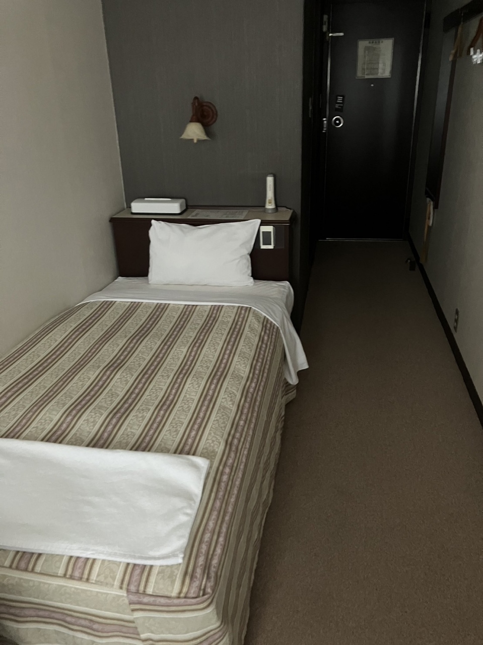 部屋のお風呂はベット幅と同じサイズだったので、お風呂も狭かったです。