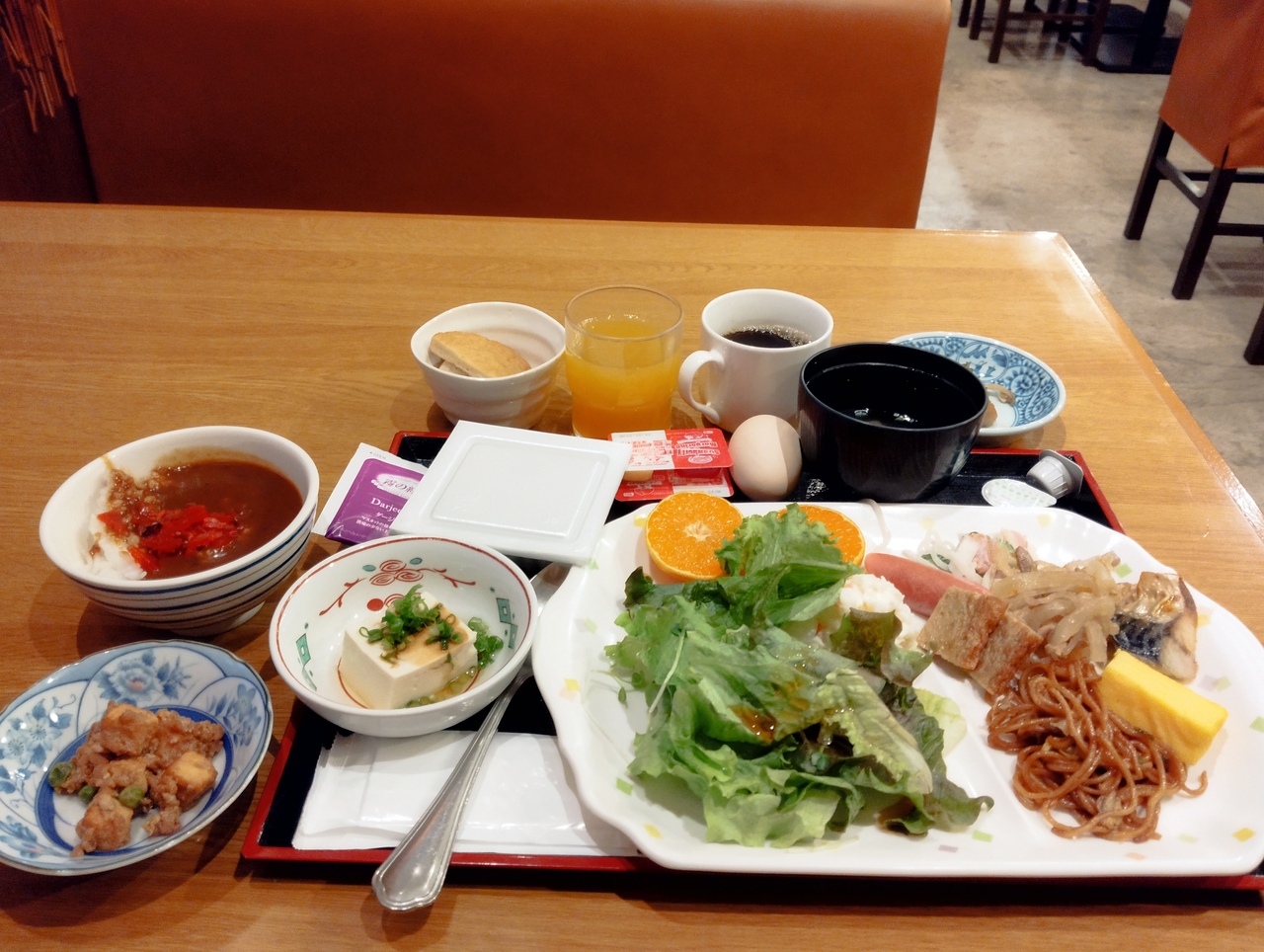 朝食も種類は多くはなかったですが、ミカン、サラダやカレーなど一通りはあり、楽しめました。