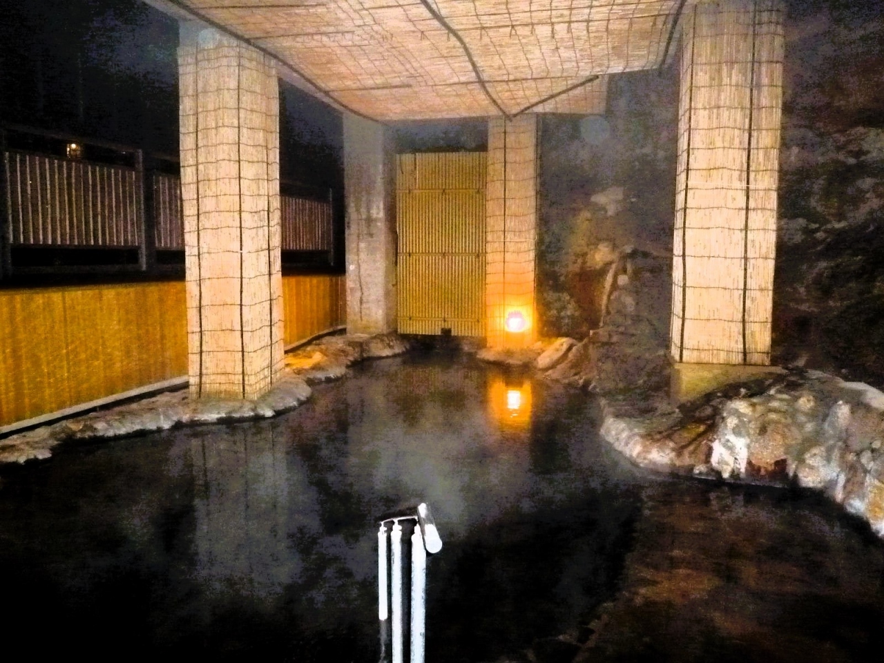 お風呂は源泉掛け流しで5種類入りました。どの風呂も造りが凝っています。洞窟風呂が有名ですが、滑りやすいので注意が必要です。