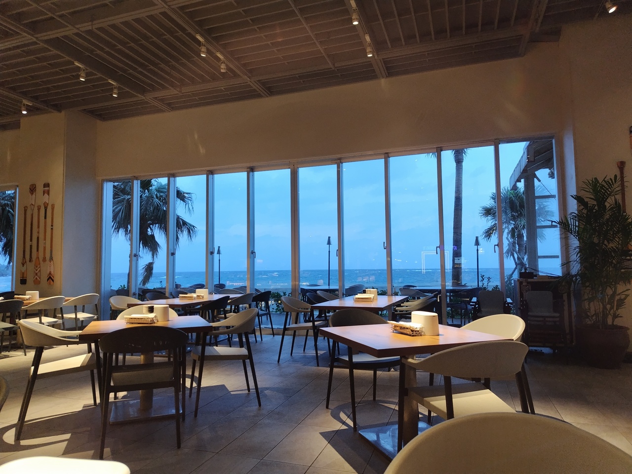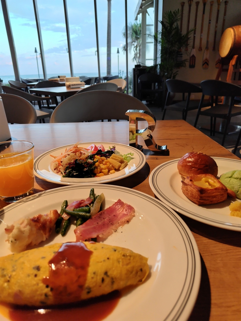 お得情報オーシャンビューのレストランで朝食を楽しむ ビュッフェ朝食付
