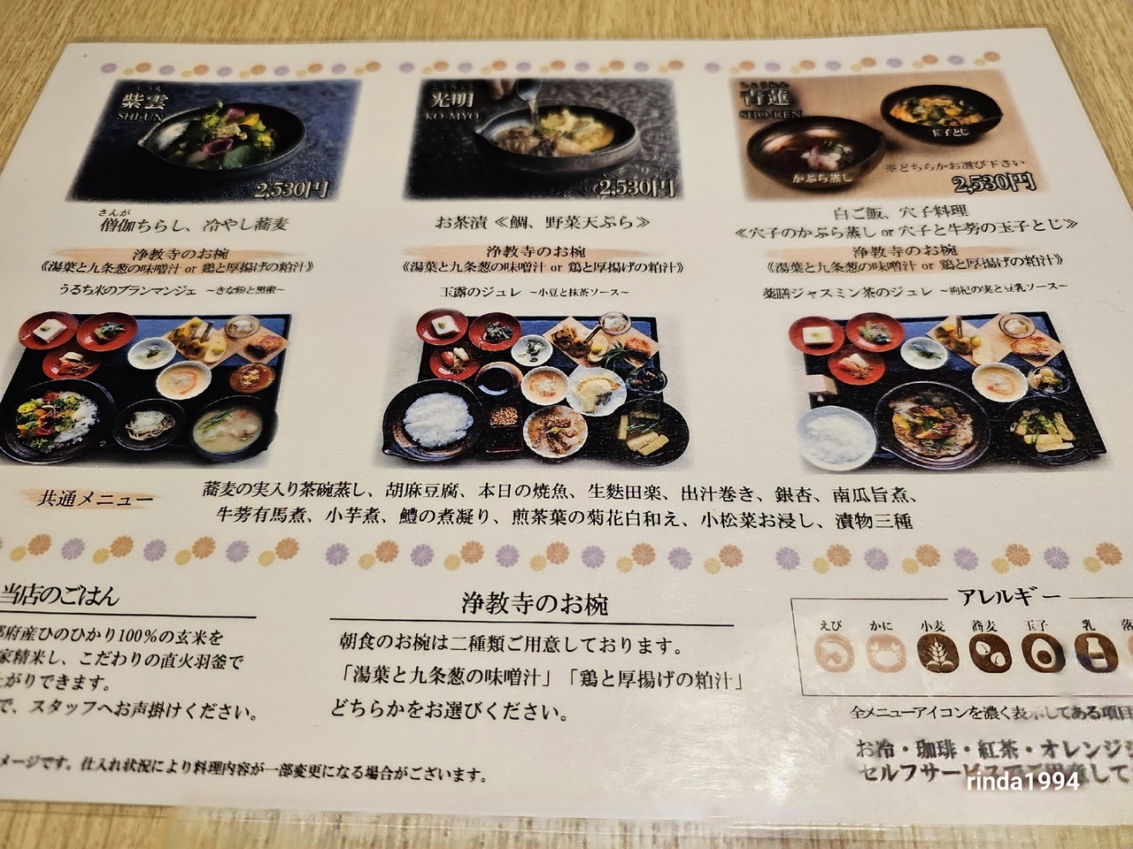 地元のものがふんだんに使われていてお野菜たっぷり、お魚の西京焼き、生麩等おかずの種類も多く大満足でした。