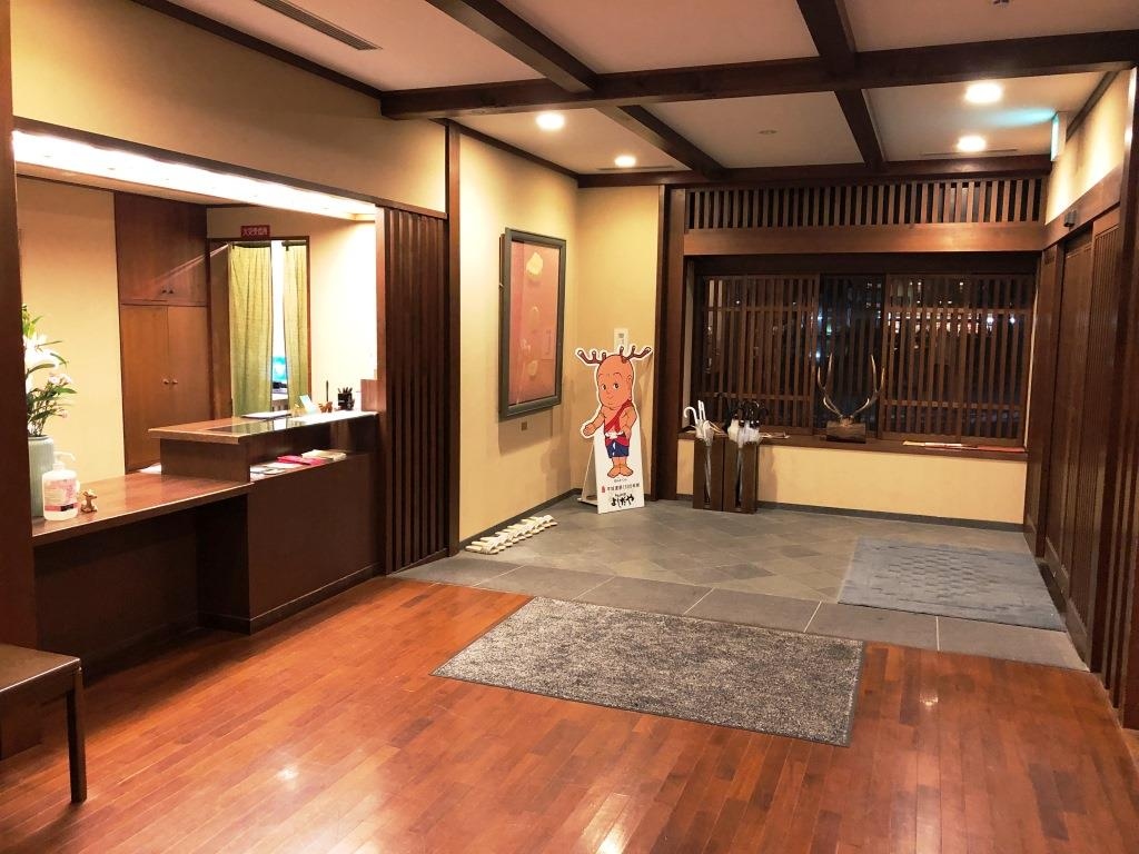 木造りの格子の扉の正面入口を入ると、奈良のマスコットキャラクターである「せんとくん」が出迎えてくれました。フロントは、正面入口を入り右手にあり、コンパクトな造りでした。チェックインはフロントでするのかと思いきや「ロビー・ラウンジ」に案内され、ソファに掛けながらのチェックインです。席に着くと温かい、美味しい柚子茶のウエルカムドリンクが振る舞われ、歩き疲れた体と心を癒してくれ、ホッと一息をつくことができました。チェックインの手続きの後は、客室係が食事処、お風呂や館内についての説明してくれました。それが終わると鍵を受領し、自分たちでエレベーターを使い部屋に行くというシステムです。非常に合理的で、立ってチェックインするより余程楽でした。「客室」は、洋室タイプで綺麗に整理整頓され、清潔に保ってありました。まず、部屋に入って気になったのが、低層のベッドとその横に三畳くらいの畳のレスティングスペースがあるということです。ベッドに横にならなくても畳の上で大の字になれます。マンション暮らしなので、畳の上で寝るということは余りありませんからね。ここでも「さるさわ池よしだや」のこだわりがあるようで、「寝具が変わるとなかなか眠れない」、「眠りが浅くなってしまう」という宿泊客のためにマットレスは、米国高級寝具ブランド「キングスダウン」製のものを使用しているそうです。このマットレスは、通常のマットレスに比べ、寝返り回転数は約5分の1で、水に浮かんだような感覚を与え、体中の血液の循環などを妨げることがないそうです。そして、窮屈なベッドカバーでベッドを包むのではなく、シーツで包んだマットの上に羽毛布団をかけ、旅先でも普段通りの眠りを提供できるデュベスタイルを採用しています。どおりでよく眠れたわけです。