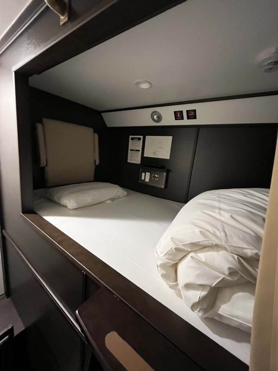 セミプライベートでしたが、上段ベッド型で登り降りが少し大変でした。