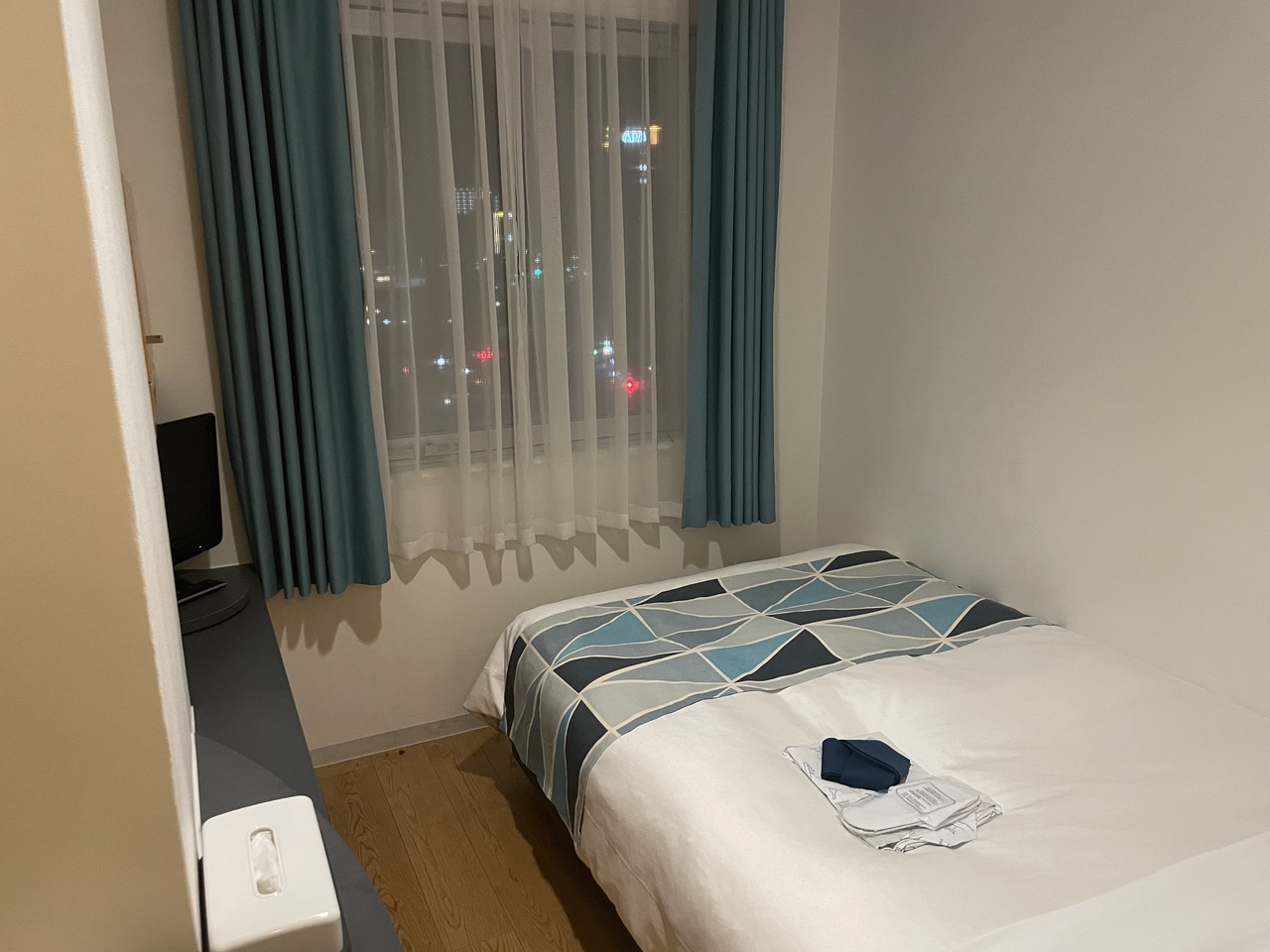 広島駅からも徒歩圏内。建物はデザイナーズホテルといった造り。そこまで古さは感じない。シングルルーム、ユニットバスともに若干狭め。