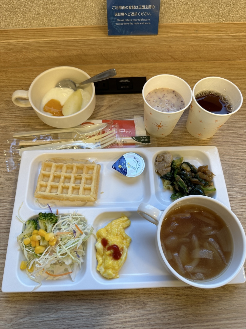 朝食も同じ場所ですが、日替わりスムージーやおかず、パンが美味しかったです。