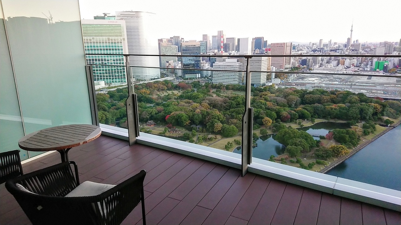 一覧を見るバルコニーからは浜離宮の眺望も美しい