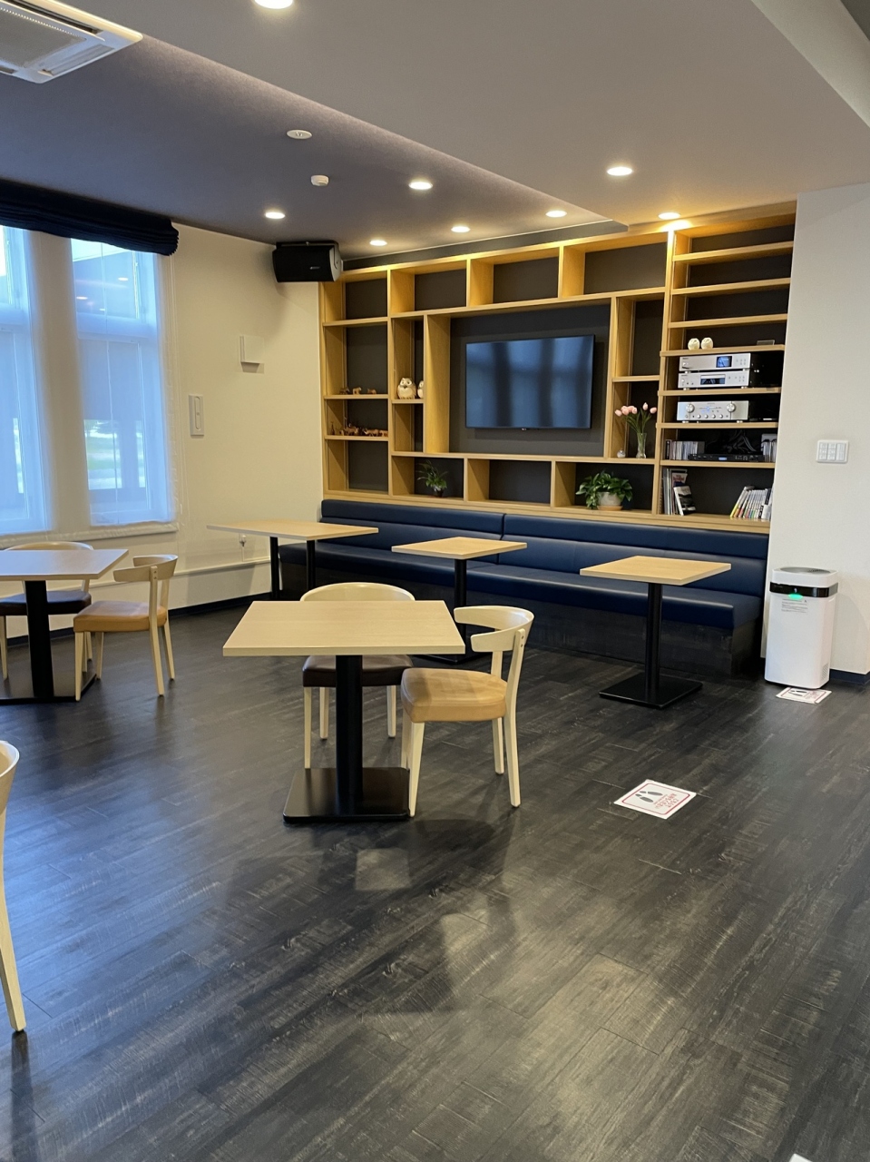 1階のロビー近くの食事スペースは休憩場所として使えそうです。