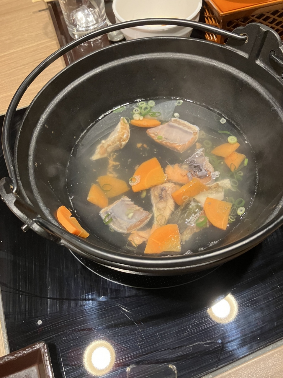 キンキの姿揚げ、釜めし、お刺身、鍋