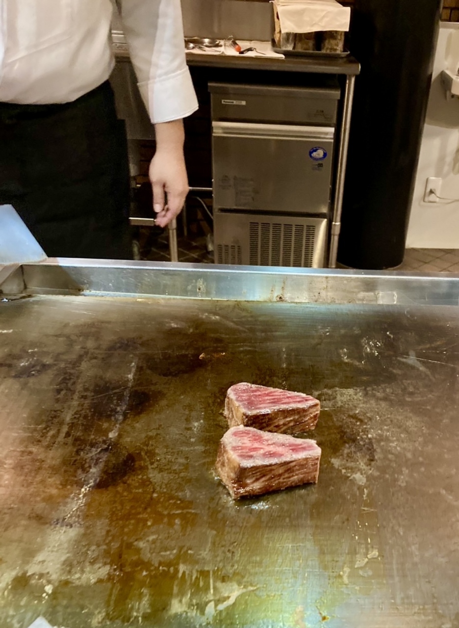 ディナーは、鉄板焼きフレンチを選びました。白老牛のステーキは期待以上の絶品です。地元の野菜を使った料理が美味でした。