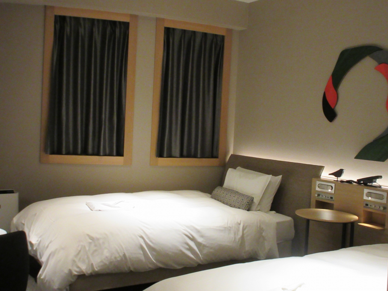 今回はツイン。ベッドは大き目バスルームも広め、テレビが大きいのが個人的にはとても良い。