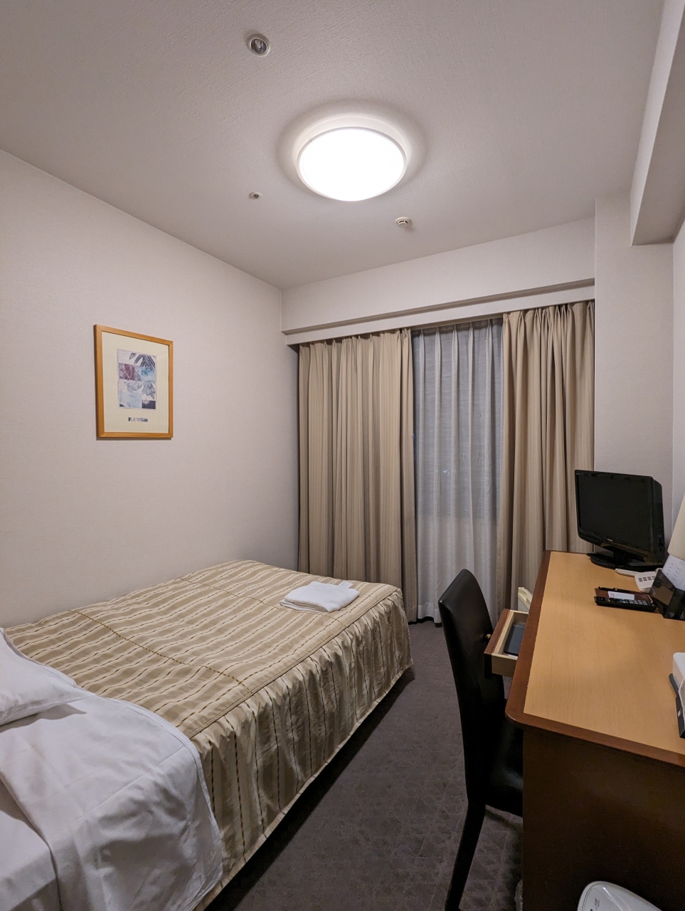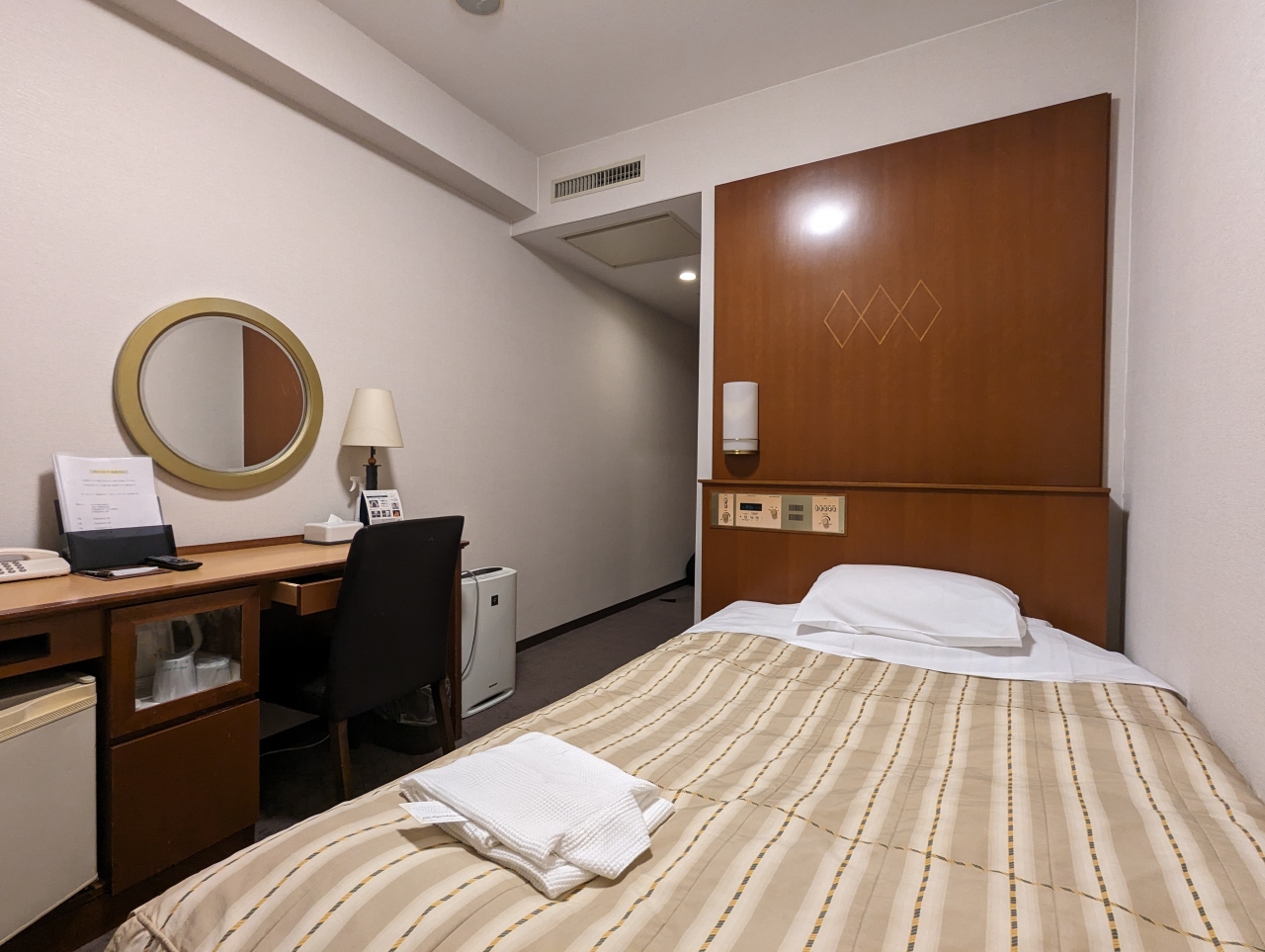 このホテルの最大の特徴は、何と言っても静かに過ごせることです。駅に近いにも関わらず、電車や車の往来の喧騒はほとんど聞こえてきません。またエアコンや冷蔵庫の駆動音も静かで、夜は余計な音を耳にすることなくぐっすり眠れると思います。