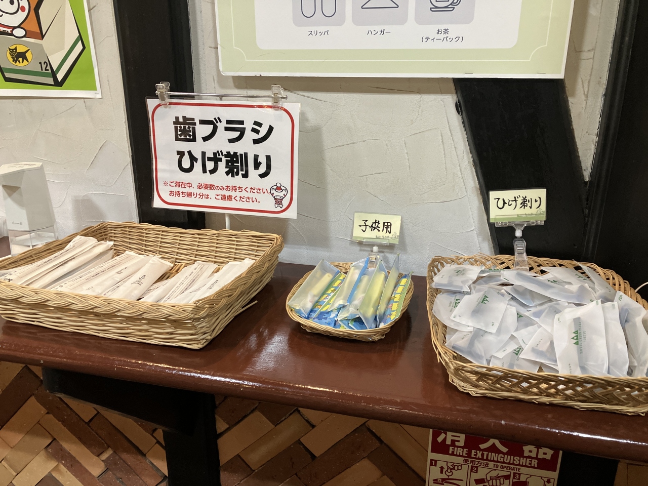 歯ブラシ・髭剃りは売店前に置いてあるのでそこから持っていくシステムです。