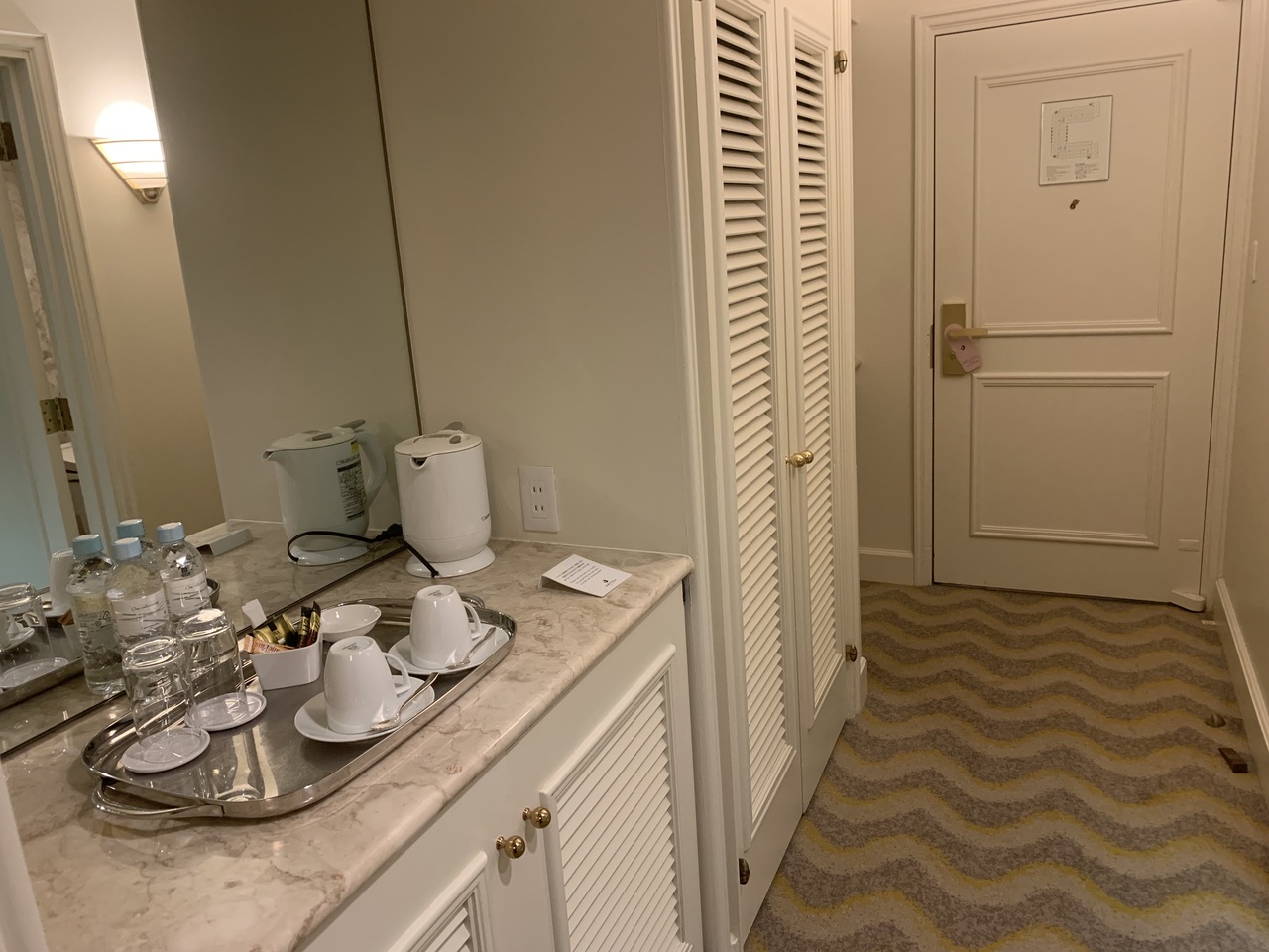 隣接するヒルトンやシェラトンに比べると、レストランは少ないですが、カフェではレストランで作られたお弁当もあり、ホテルへのチェックインが遅くなっても購入することができます。(価格はオークラ価格になりますが、)