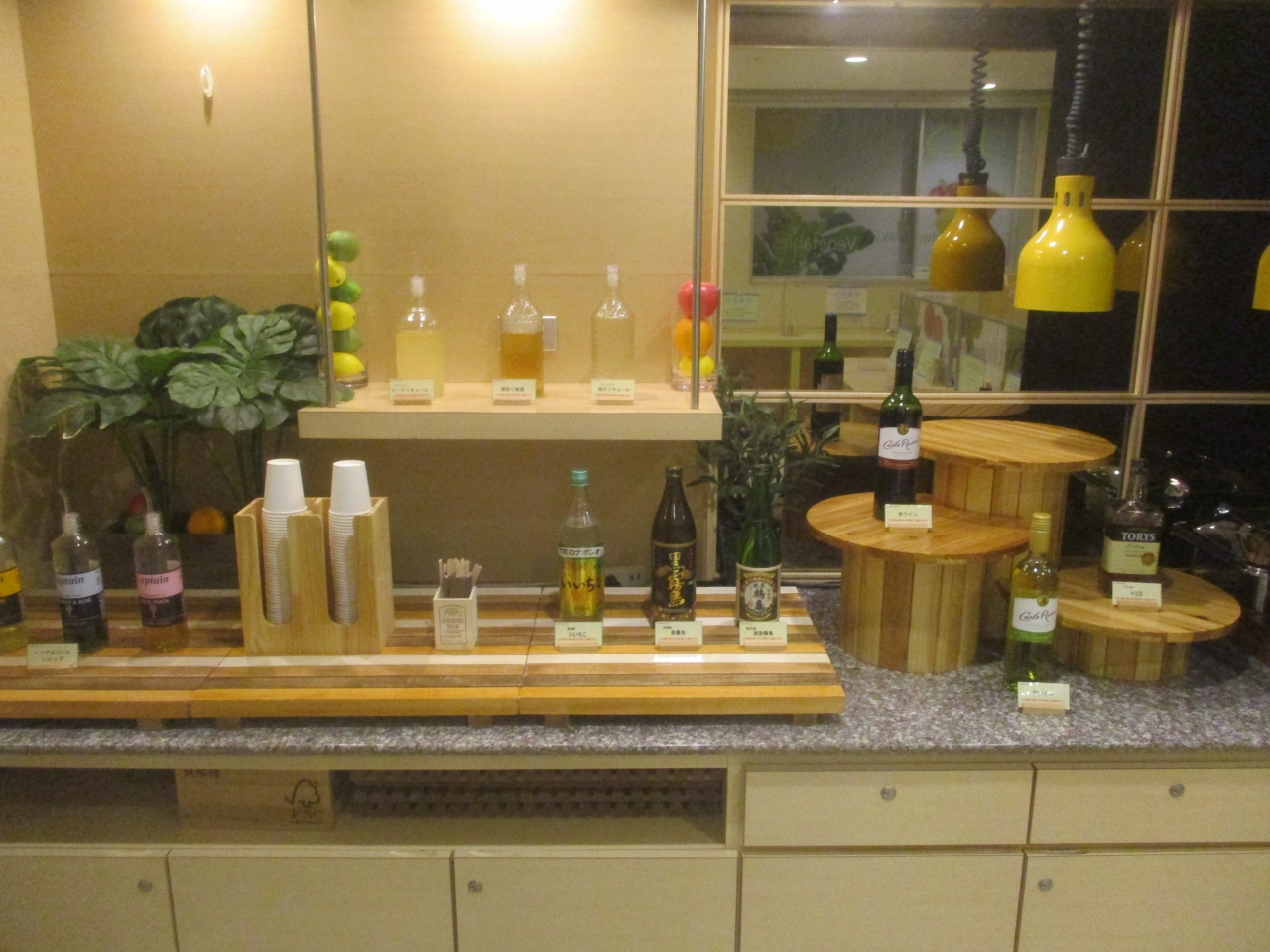 スーパーホテル 東京・大塚にはカクテルやワイン、ウイスキーなどのお酒を無料で自分好みに作って飲めます。近くにこれとこれを混ぜて作るのがおすすめと説明がありました。自分で作れるから飲んだことがない組合せも気軽に試せました。知らない飲み方を知り、奥が深いと感じました。