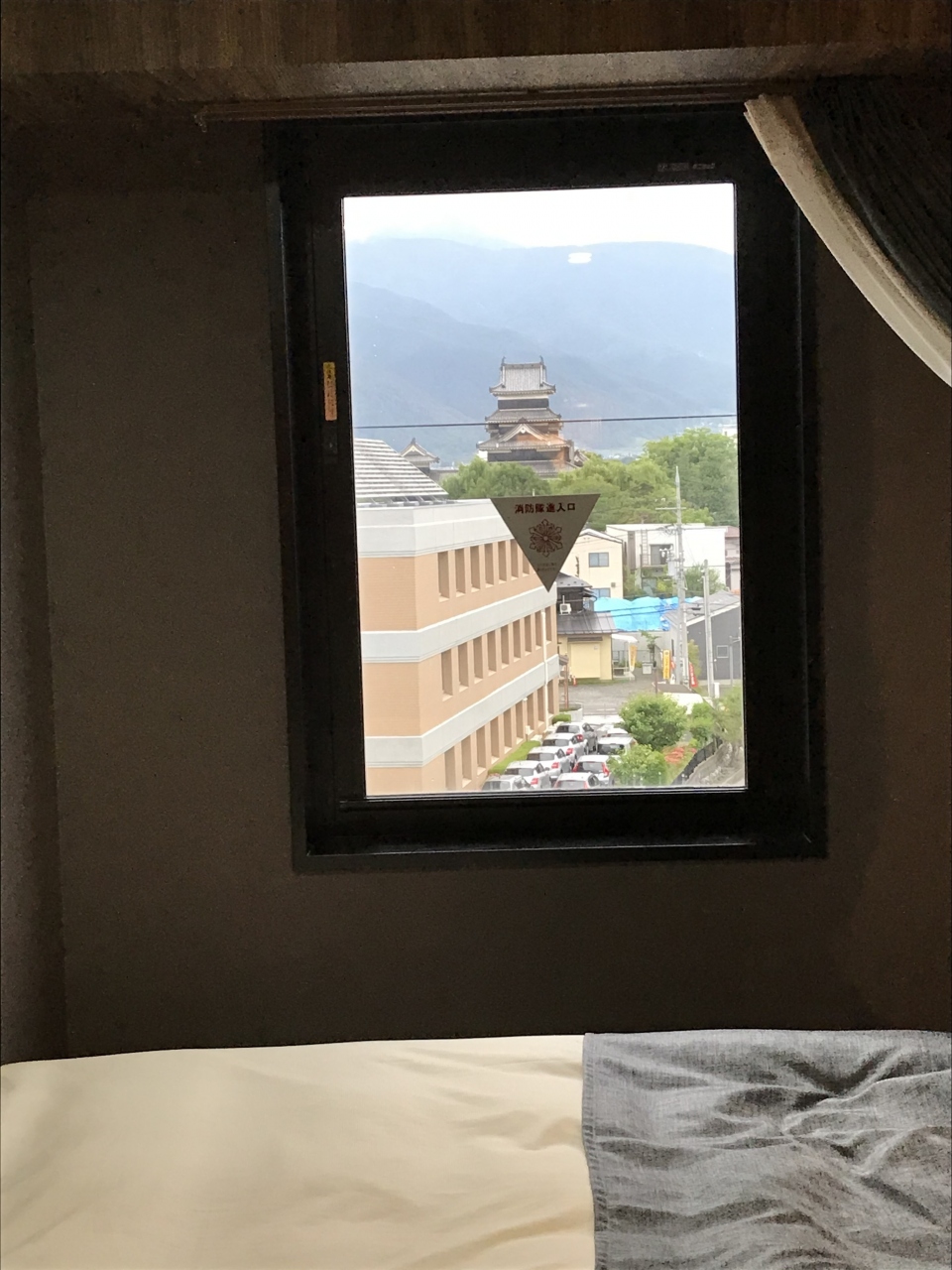 部屋の窓からは松本城が見え 室内もきれいで落ち着きました。周りに飲食店は少ないですが、松本城付近まで7,8分歩いて行くといろいろあります。