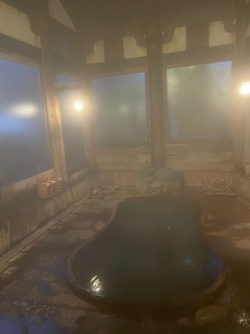 金具屋さんには、3つの大浴場と5つの貸切風呂の計8つのお風呂があり、お風呂によって異なる源泉を使用しているため泉質が異なるそうです。貸切風呂の利用は無料、予約制ではなく、空いていたら内側から鍵をかけて利用するタイプ。全てのお風呂の入浴時間は15:00から翌10:00で一晩中使用可能です。