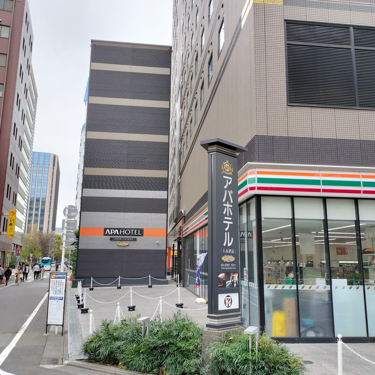 大森駅前のアパホテルです。駅前と言ってもロータリーからは少し外れています。1階にコンビニが入っていて、まわりには飲食店や大型スーパーがあるので、飲食や買い物には便利です。大森駅前からは羽田空港に路線バスが走っています。大浴場があるのが嬉しかったです。