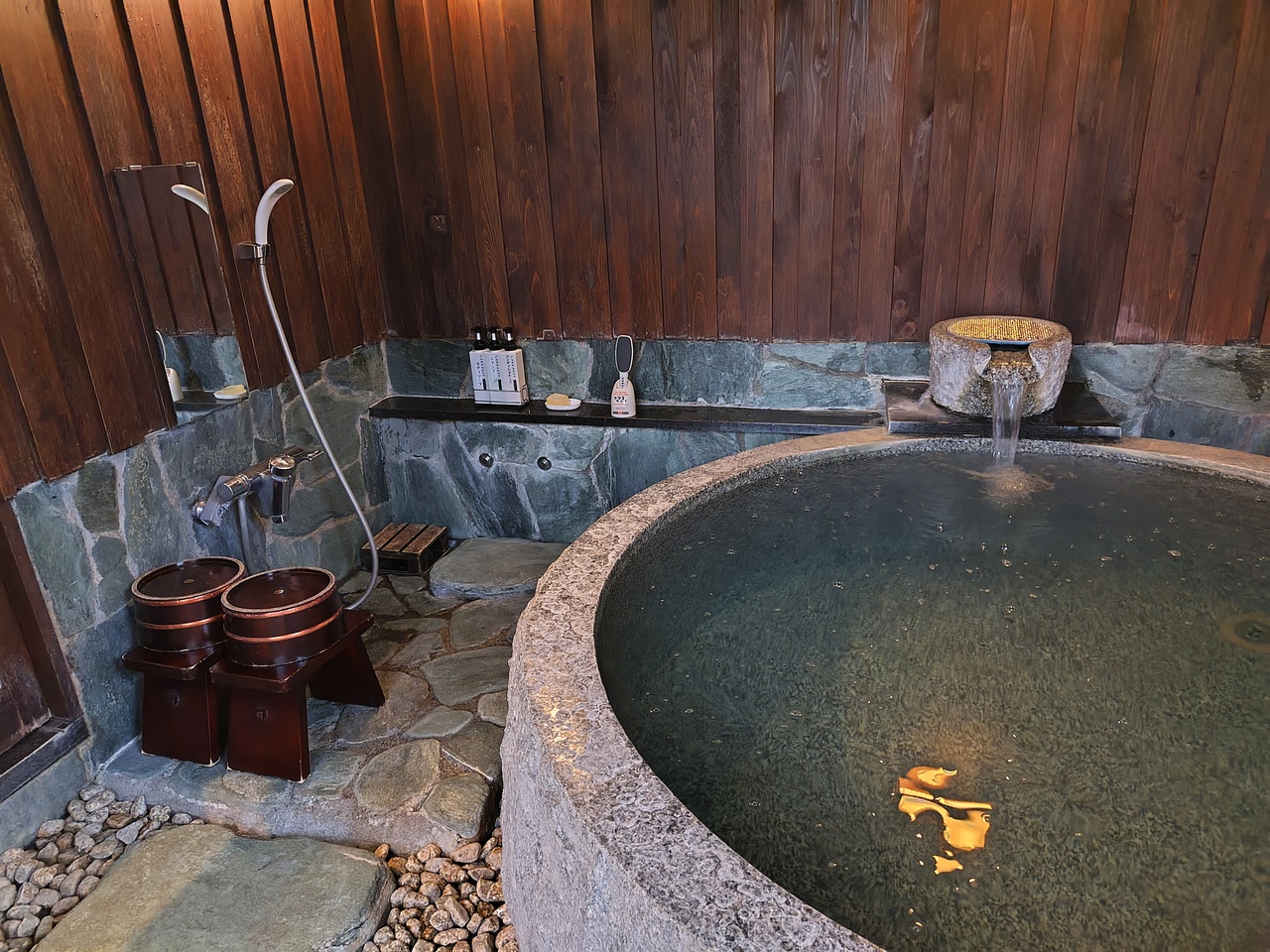お風呂は大浴場と貸切風呂の両方利用しましたが、大浴場のトロトロなお湯に比べて、貸切風呂のお湯は少しとろみが薄い?ように個人的には感じました。