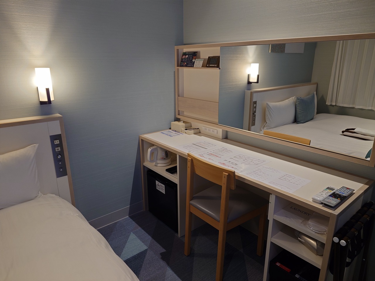 2021年5月にオープンしたホテルだけあって設備は最新。朝食会場も兼ねる一回ロビーは広々としており、簡単な打ち合わせなどにも利用できそう。チェックイン、チェックアウトは、最近主流の機械式ですが、ストレスは少ない。部屋は広くはありませんがスタイリッシュなデザインで、ゆったりサイズのベットは心地よい眠りを誘う。1階には、男女別の大浴場があり、ゆったりできます。食事はしませんでしたが、夜には深夜食としてカレーライスを200円で販売していました。次回は食べてみたい。