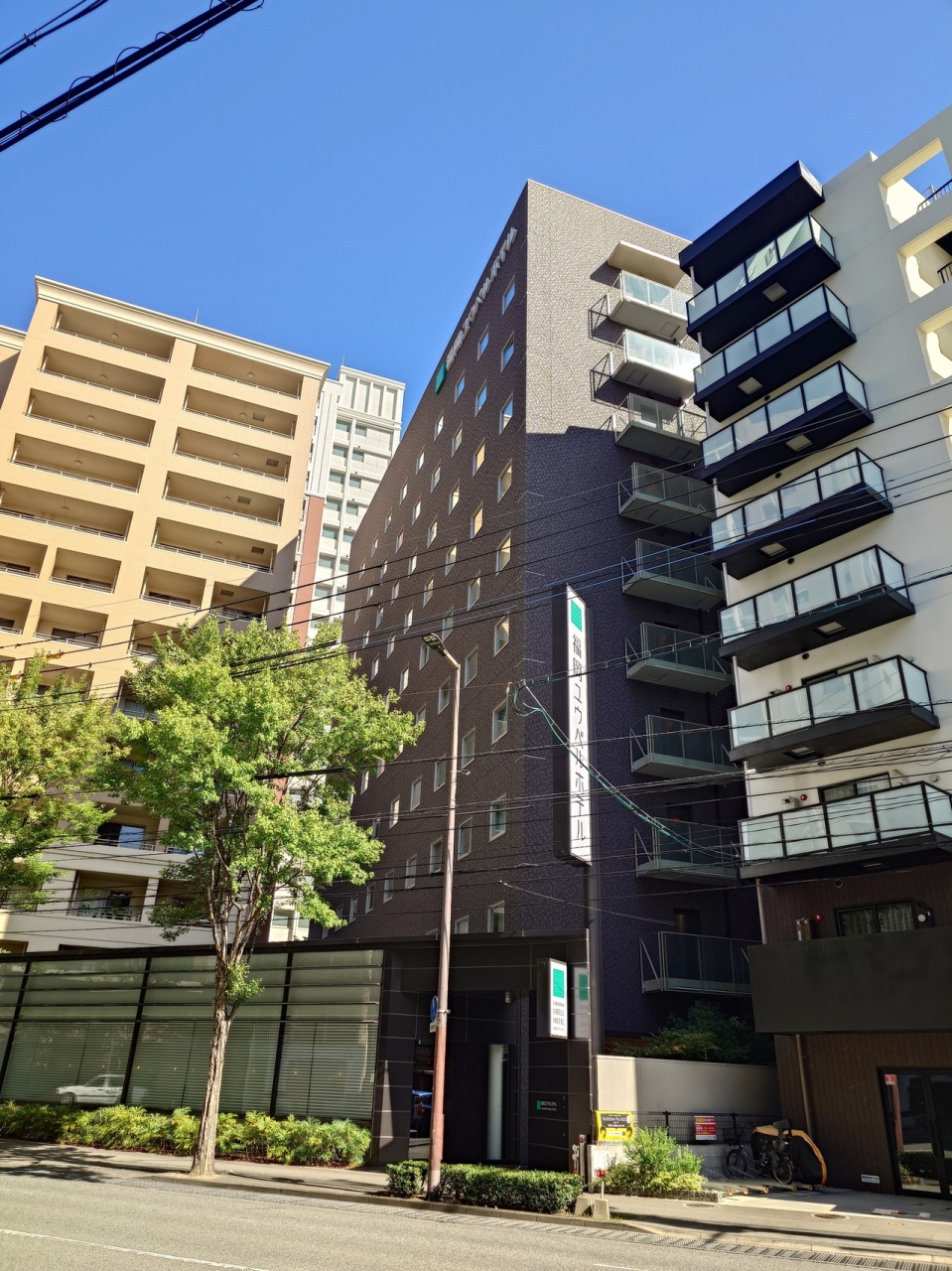 地下鉄七隈線薬院大通駅から徒歩10分弱、空港線赤坂駅から徒歩15分弱のところにある全141室の中規模ホテル。天神からも徒歩圏内。県道31号福岡筑紫野線沿いにあり、隣のマンションや病院に馴染んできて、夜は少しわかりにくいかも。
