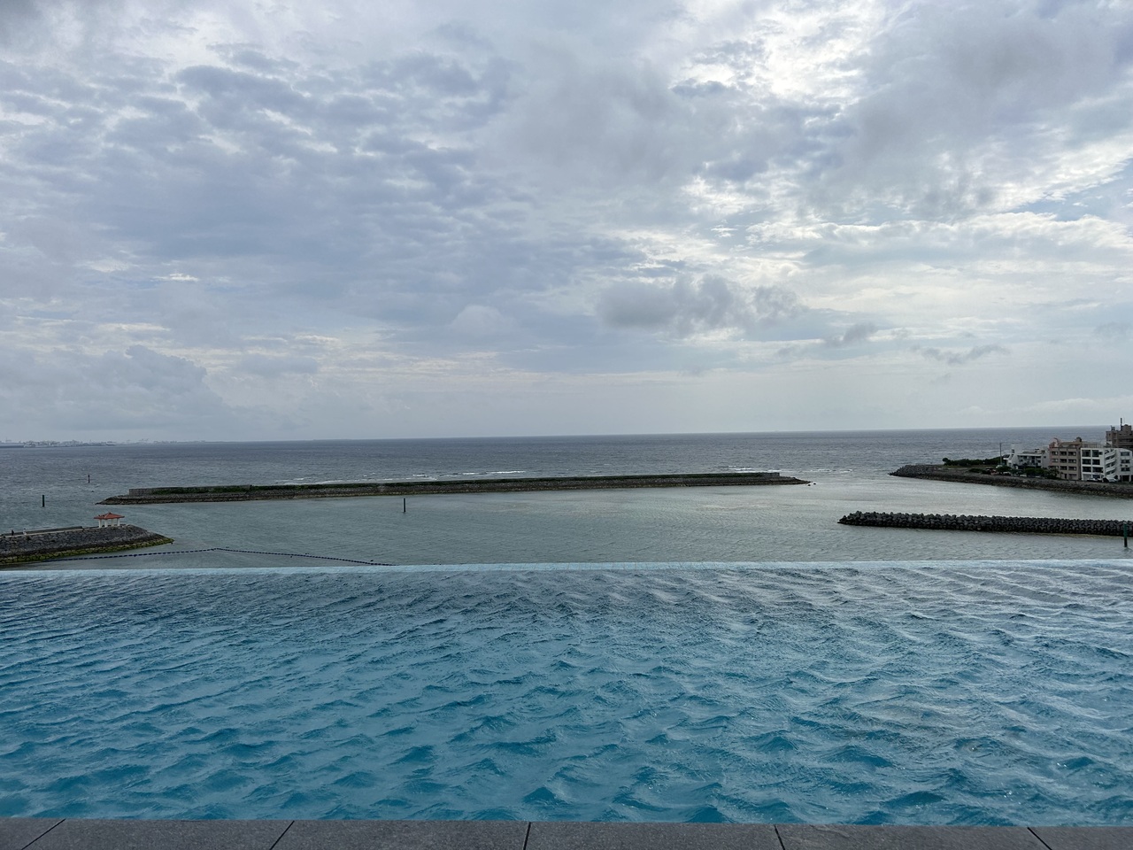 ラウンジにはテラス席、屋上プールがありプールはインフィニティプールで
