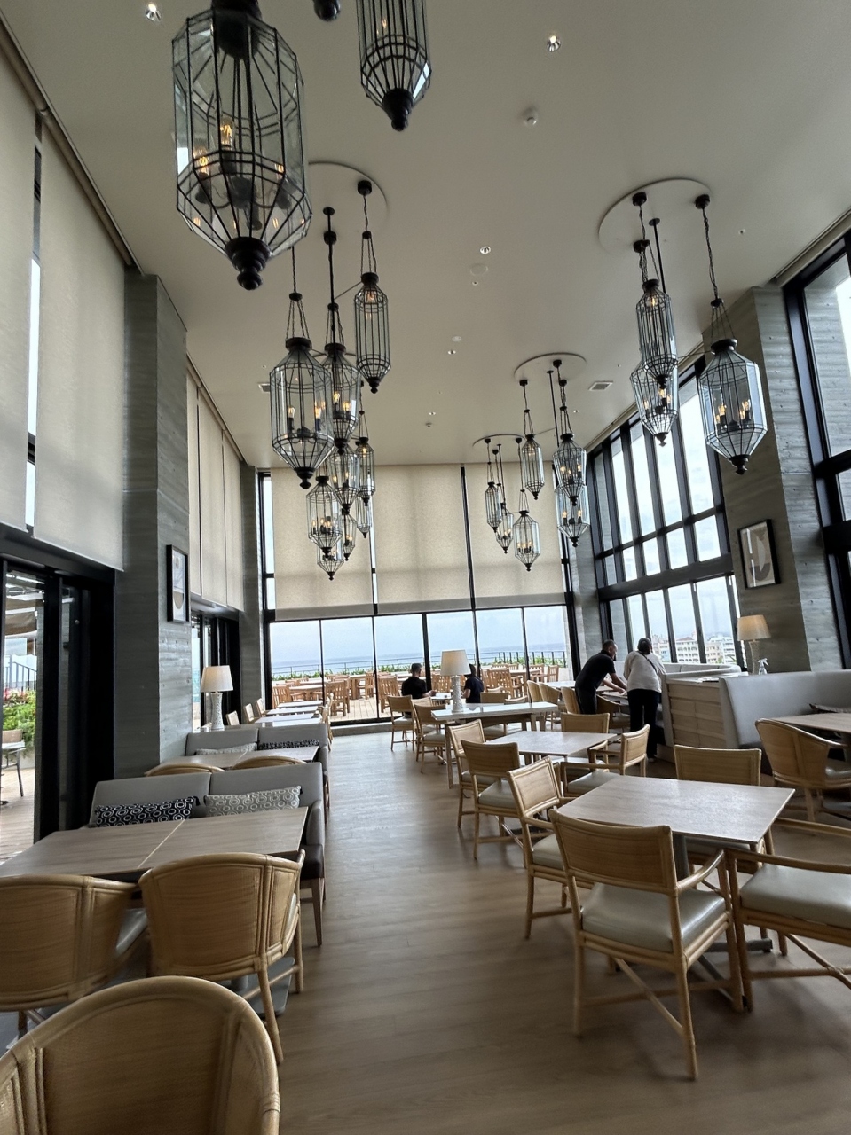お得情報オーシャンビューのレストランで朝食を楽しむ ビュッフェ朝食付