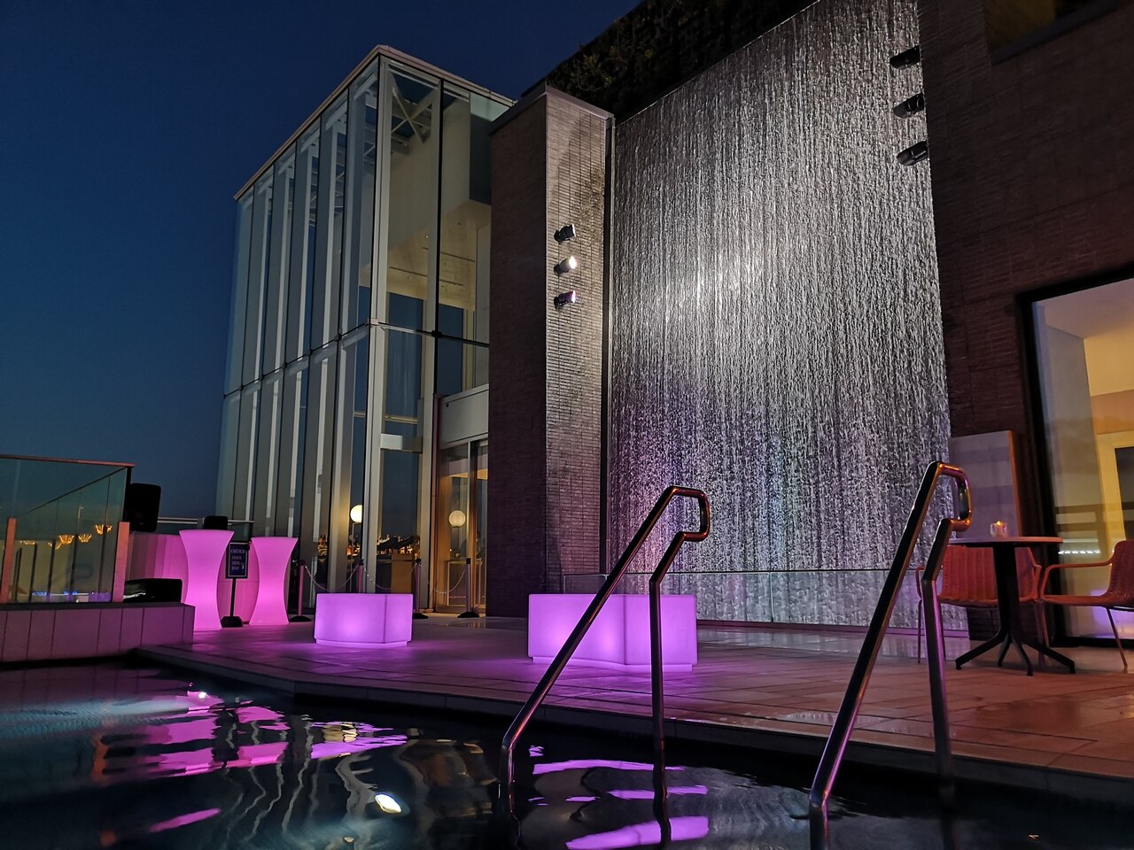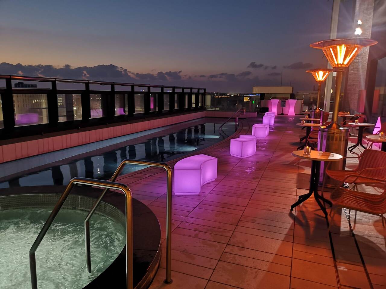 このホテルの特徴は屋上に屋外プールがあり、温水で冬でも入れること。夜遅い時間までやっており、ナイトプールのような雰囲気になり音楽もかかりお酒も頼める。インフィニティプールではないのでプールに入りながら景色は見れないのと、ビーチベットはない。また昼は直射日光が直撃するのにパラソルはないので夜と朝の利用がお勧め。子供用プールにダックが浮いているが、よくみると黒いダックもいる。プールは宿泊者であれば無料で利用出来る。東南アジアのシティホテル感もあり非日常を楽しめる。