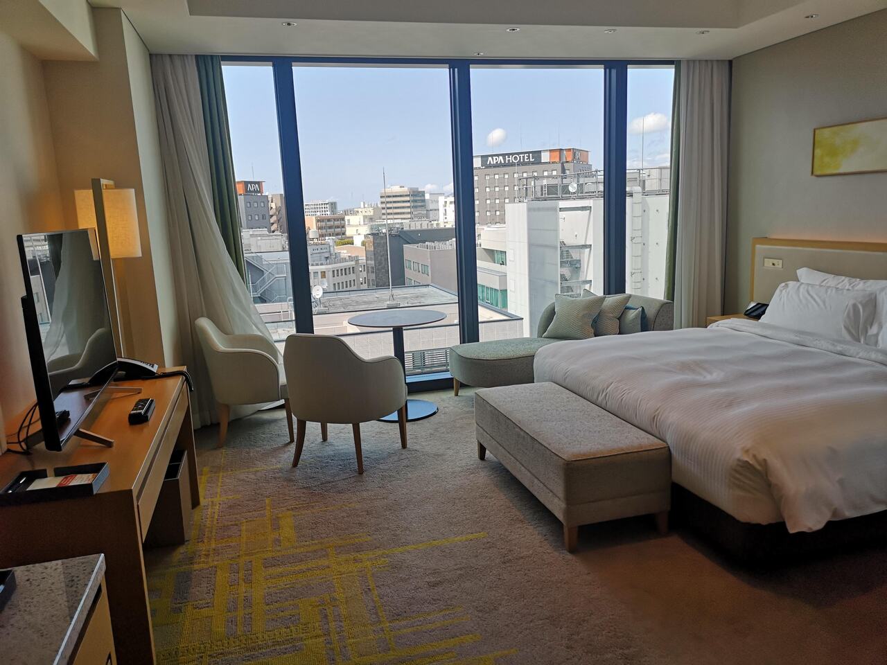 博多駅から近く地下でもつながっていて便利。周りは高いビルで囲まれており、隣のビルとの距離も近いので景色は全く楽しめず、ほとんど部屋のカーテンを閉めっぱなしで過ごした。また部屋にちょっとした物を置いておけるような棚がないのも不便だった。(クローゼットはある)