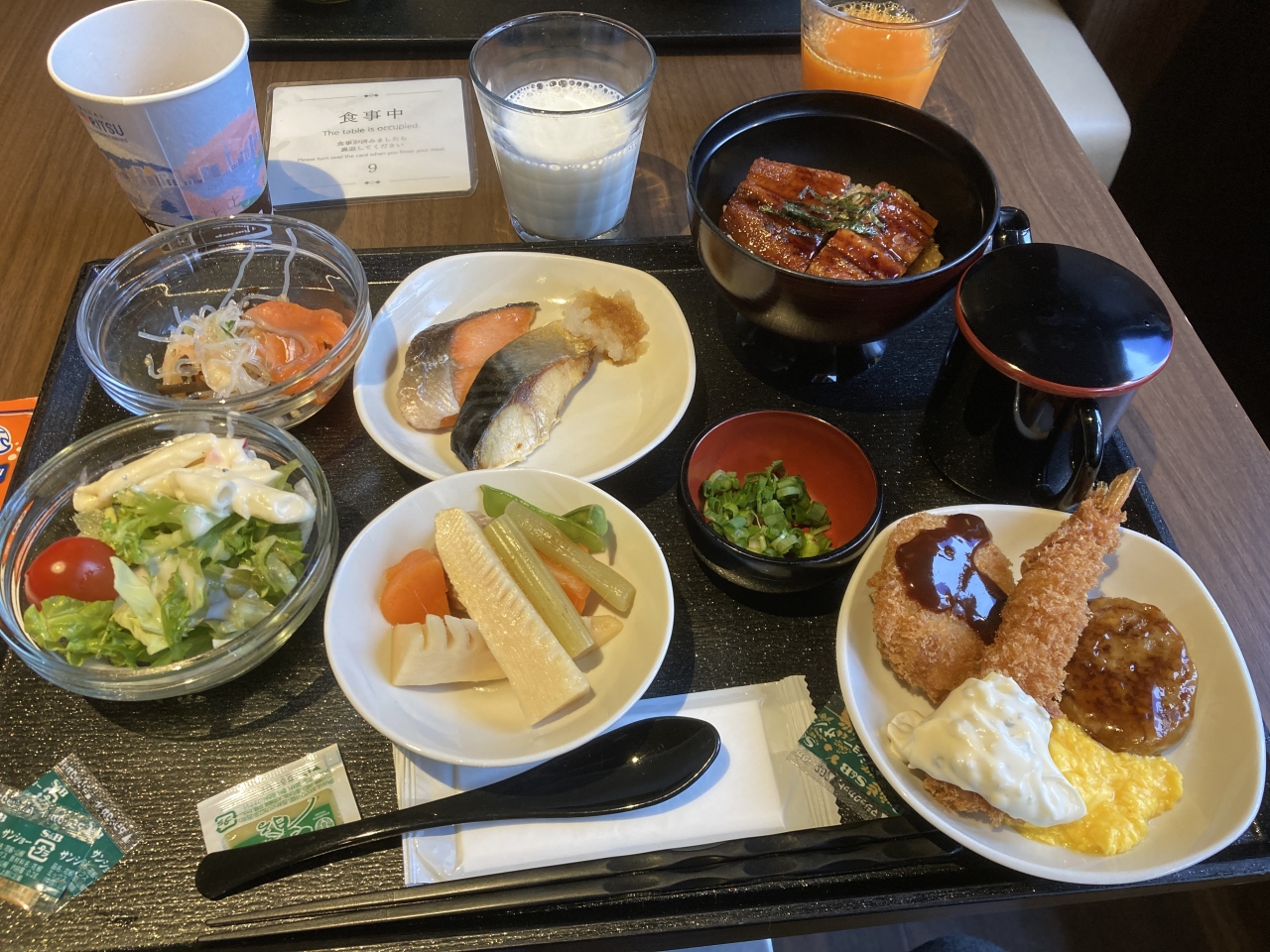 素泊まりに朝食を追加すると2300円になりますが、ひつまぶしもあってメニューの種類やクオリティを考えるとこの金額でこの内容はコスパ秀逸です。