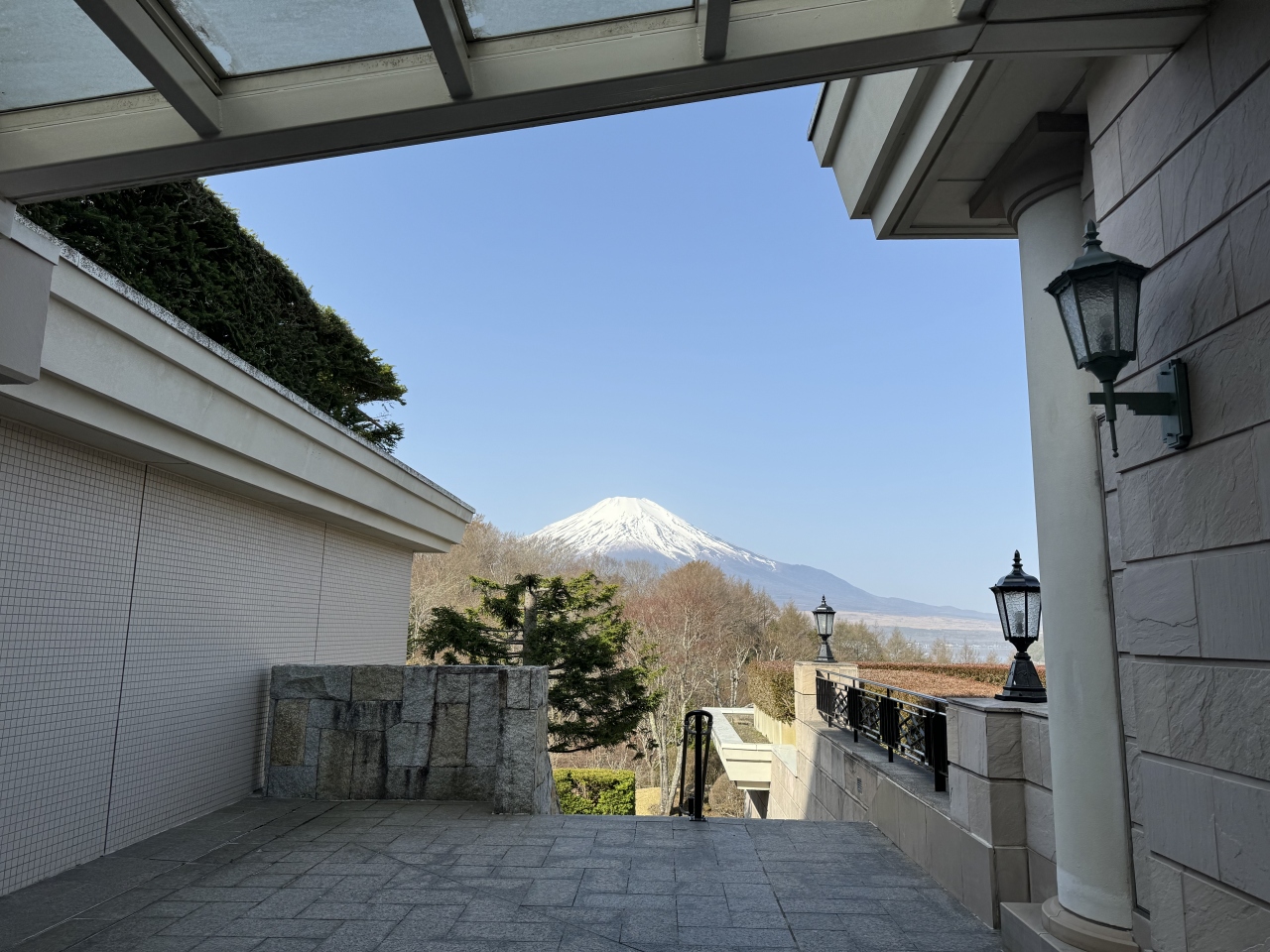 一覧を見る富士山が見える丘にあるエクシブです。露天風呂は山中湖サンクチュアリ・ヴィラのお風呂を利用します。