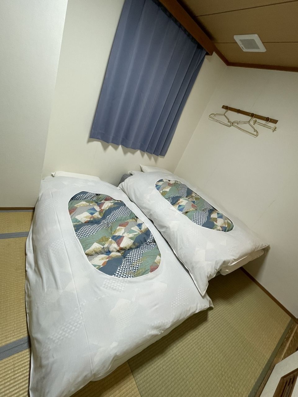 和室にふたりで宿泊。低床のベッドと布団が並んでおりどちらも寝心地が良かったです。