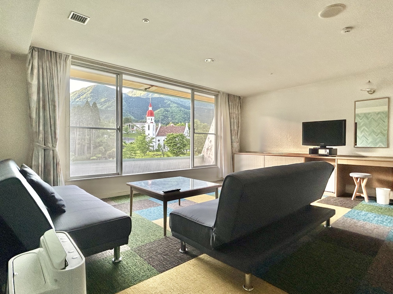 客室は豪華で、和室と洋室があるタイプで、一人では十分すぎる施設でした。