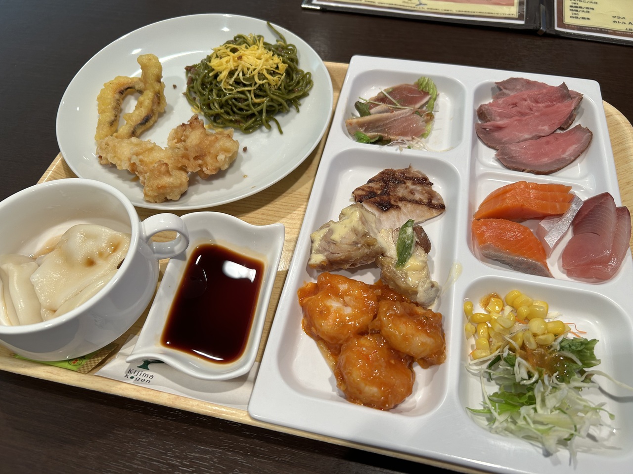 夕食・朝食はビュッフェスタイルになっていて、大分名物の鶏天や唐揚げ、刺身なども揃っていました。
