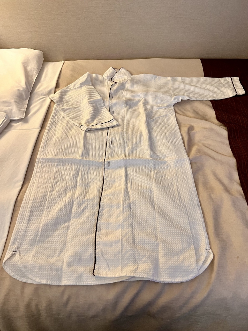 ナイトウエアはワッフル地のワンピースタイプ、コンプリのミネラルウォーターはありません。