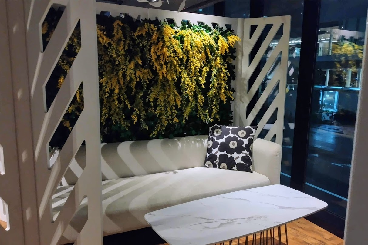 2階のリビングロビーは白樺やかわいい緑のオブジェのあるくつろぎのフリースペースで、無料のコーヒーマシンも利用できます。