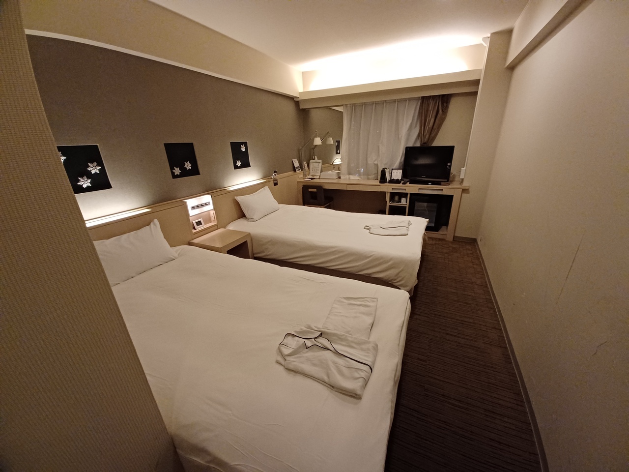 札幌駅から地下街を通って歩いて行けますが30分ほど掛かります。最寄りの地下鉄すすきの駅からも地上に出てから5分は掛かると思います。ホテルは清潔で、ベッドやタオルもふかふかなのはいいのですが、兎に角壁が薄く、隣の人の咳などフスマ越しに聞こえてくる感じでした。繁華街のため、飲食店やコンビニは周囲に多数あります。チェックアウト後も当日であれば無制限で荷物を預かってくれるサービスがありがたいです。