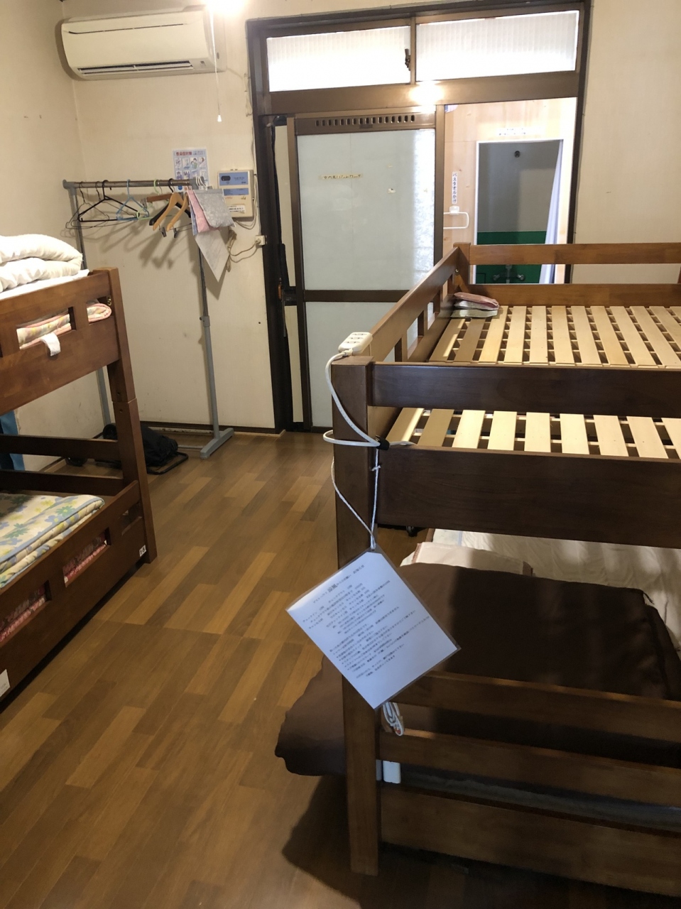 かつてどのドミトリールームにも有った3段ベットは上段を外して2段ベットにしてあって圧迫感は無かったです。
