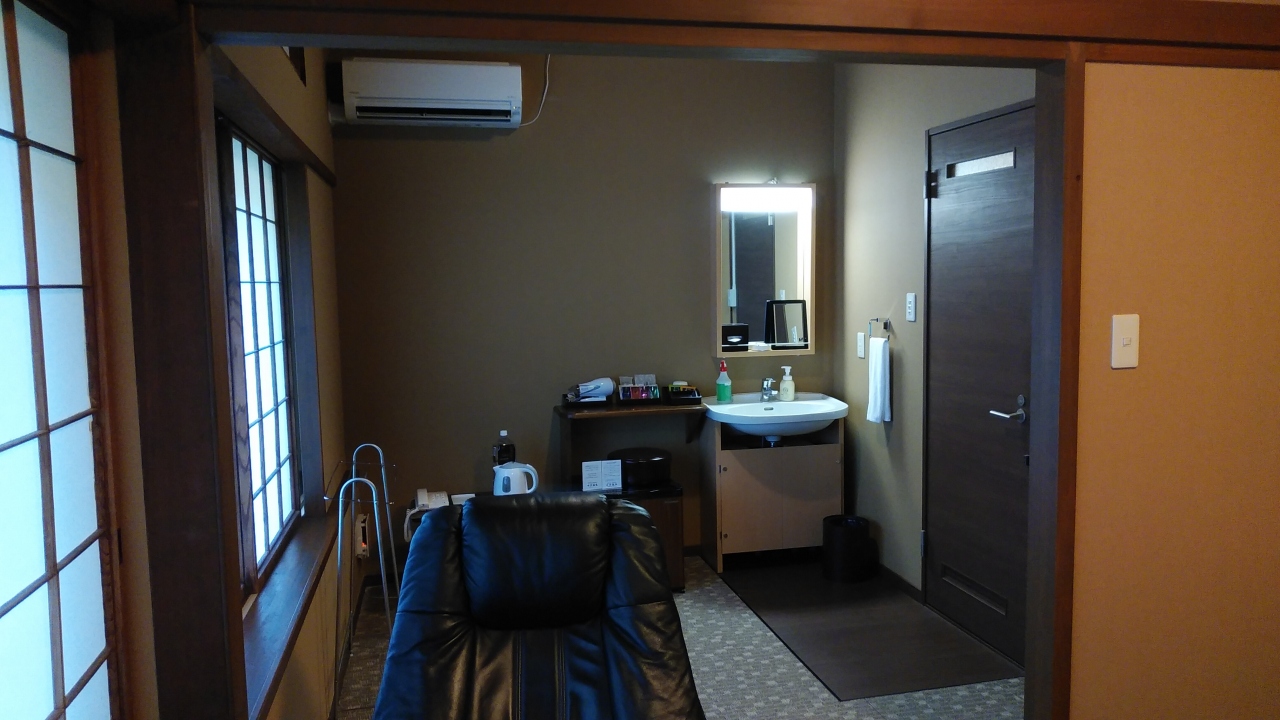 - 湯治宿時代の二部屋をつなげて一室に