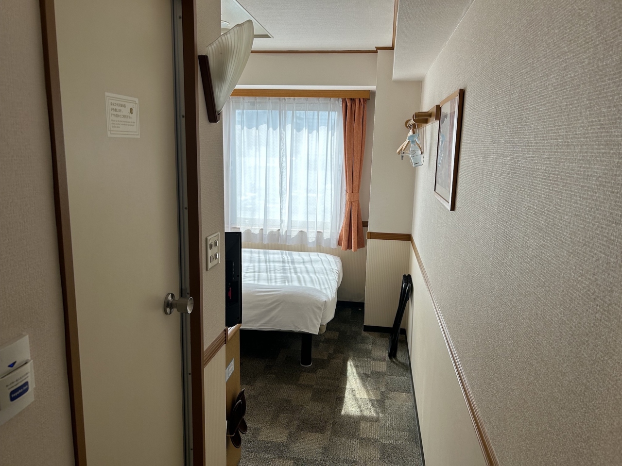 清潔でコスパが高い東横インのシングル利用です。ベッドがセミダブルでゆったりしていて寝やすかったです。場所が場所だけに夜寝られるか?心配でしたが意外にも静かでした。