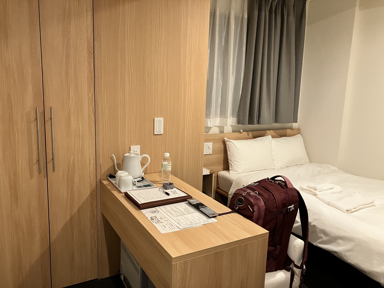 朝、先に荷物を預かってもらったけど、夜ホテルに戻ってきたら、すでに部屋まで運んでくれて、本当にありがたい。ドリンクコンナーはコンパクトだけど、選べれるドリンクはたくさんあり、とてもうれしかったです。ホテルからJR駅まで徒歩3分程度でロケがいいと思う。