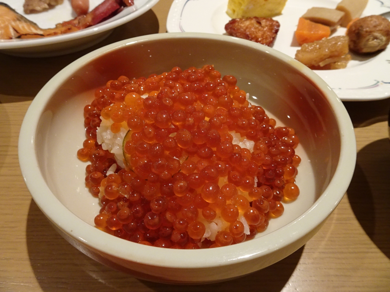 ホテル内に大浴場が2つありました。5F露天風呂は、少し深めの岩風呂の底に丸く平らな腰掛石があるのでそこに腰掛け森林浴にかこまれとても気持ちいいです。建物もリニューアルされていて過ごしやすかったです。朝のバイキングではイクラ丼をいただけました。